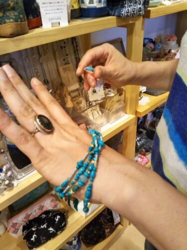 Siさん、Suさんと三人で新川崎コミュニティカフェへ。今日の私はボランティアでなくお客さん(^^) 新川崎コミュニティカフェ店長とお話し中♪ 小箱ショップを一つ一つじっくり見ているSiさん。真剣です(•ө•)♡ お気に入りが見つかったようです♥