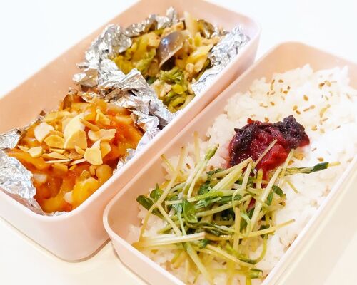 ☆白米と梅干し☆豆苗の炒めおかずは昨日と一緒。バイト行ってきまーす。