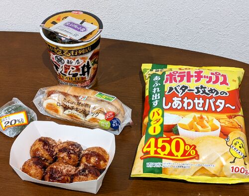 今日の夜ごはんも大変ジャンキーでよろしい(笑)おうちパーティぽくて気分盛り上がる♪ \(^ω^\ ) 食べているものはこちら▼ ☆カルビー ポテトチップス バター攻めのしあわせバタ〜強制的に幸せになるやつ。 ☆セブンイレブン だし香るふわとろ食感 たこ焼き レ…